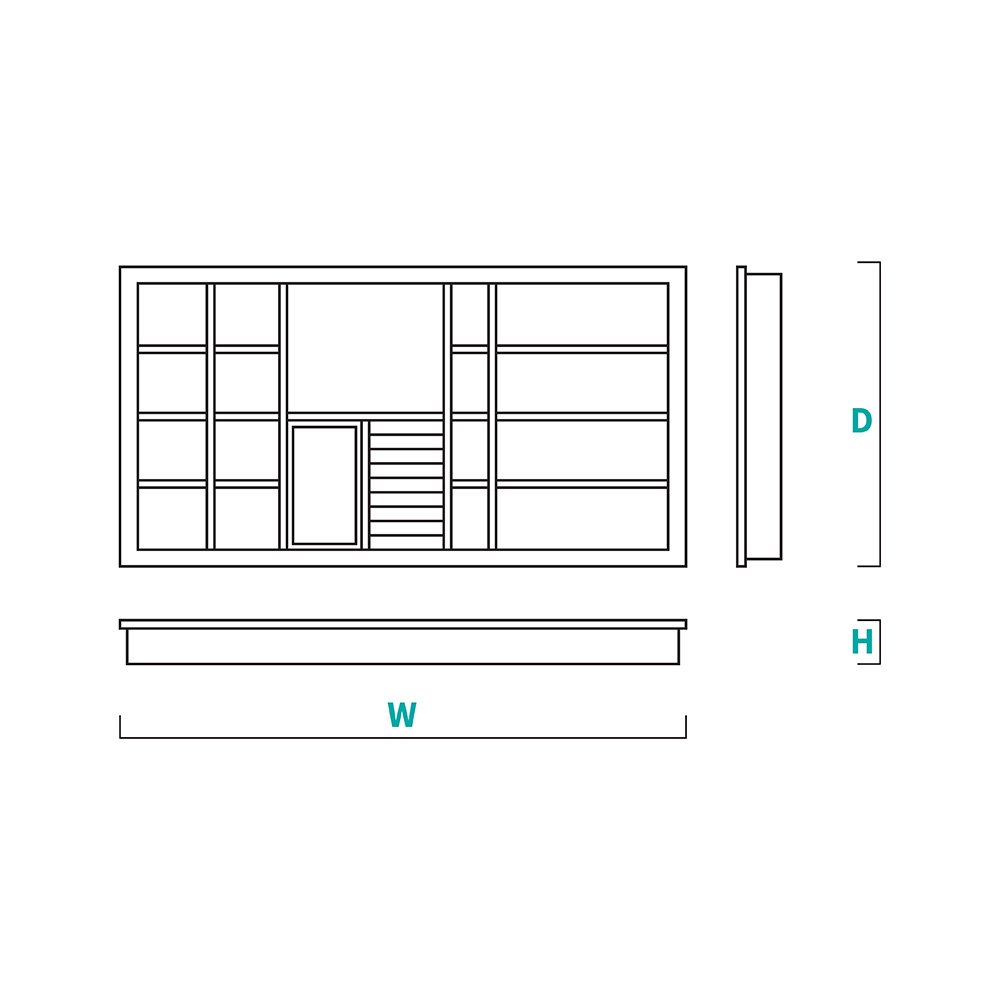 - أقسام متعددة لتنظيم المجوهرات والساعات والنظارات والعطور.