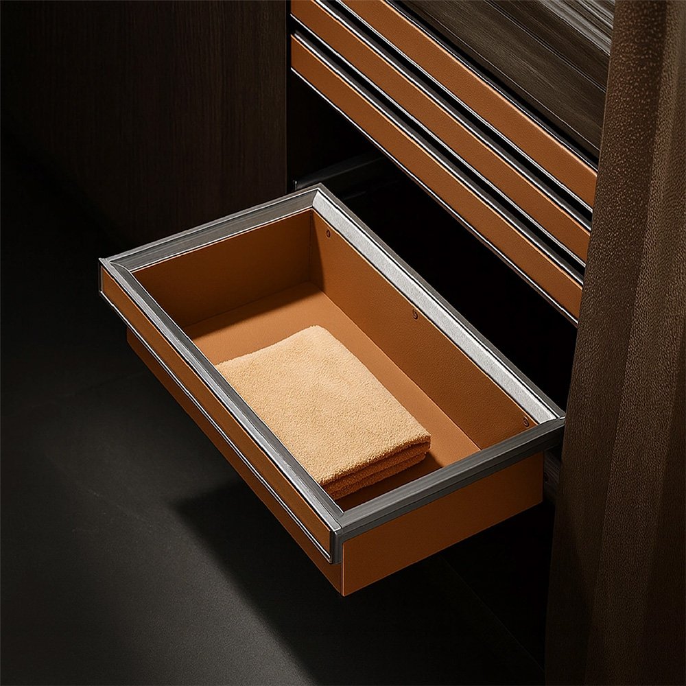 أضف لمسة من الفخامة والتنظيم إلى خزانة ملابسك مع درج داخلي سحاب مبطن بالجلد – موديل A014.